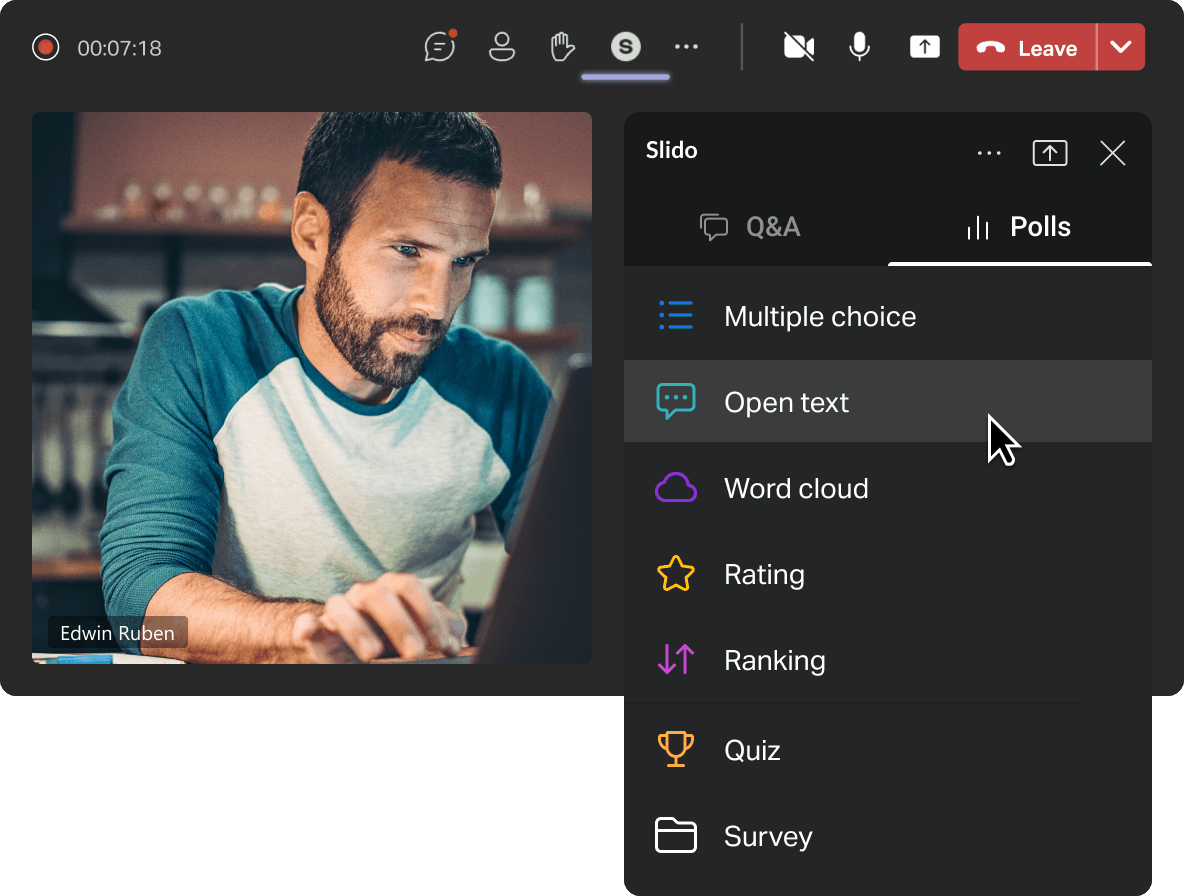 Bring more interaction into your Teams meetings with Slido’s free live polls, quizzes and Q&A.